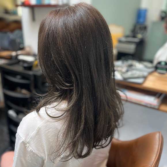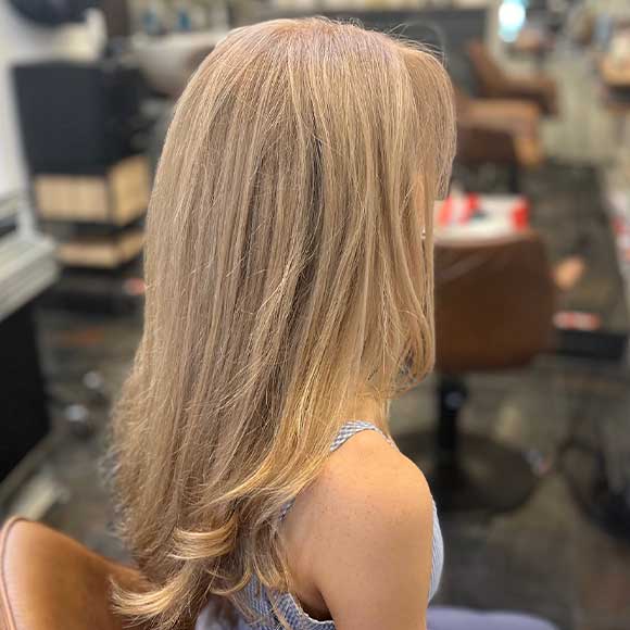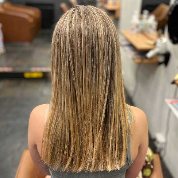 Covers 50% of hair blending natural colour with multiple tones. Creates texture and movement with subtle regrowth